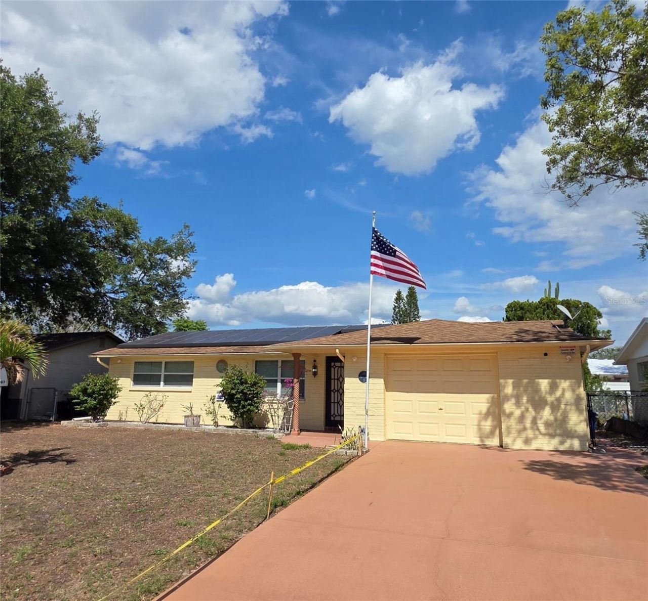 Welcome to Paradise in this well maintained 2 bedroom, 2 bath oversize garage home with screened back porch for entertaining, plus a relaxing spa. Located near downtown New Port Richey with active city parks, riverfront, shops, and restaurants. The primary bedroom has its own private bathroom and walk in closet. Great room with laminate style floors throughout. The oversize garage is perfect for allowing extra storage. The solar panel system saves money on your electric bill. See this home today and make it yours. Camera security system does not convey.
